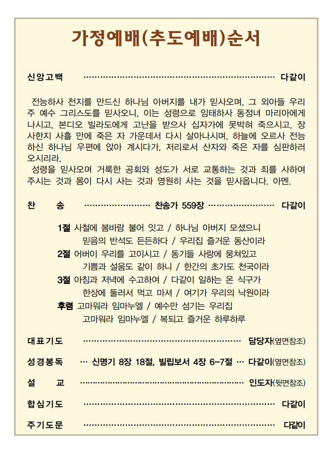24추석명절 추도예배순서지