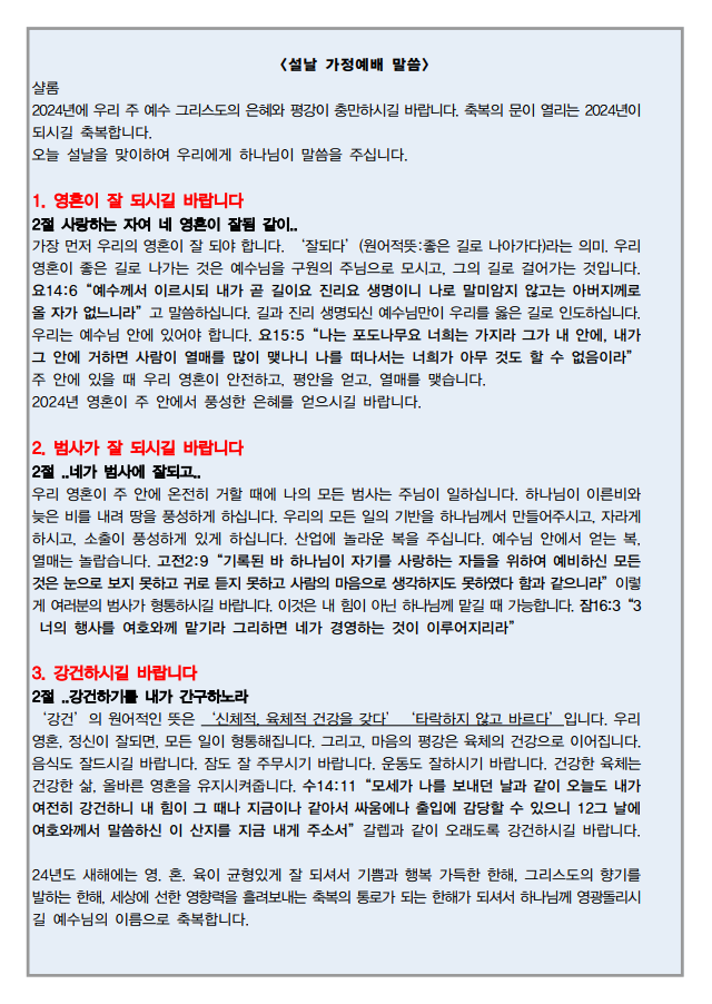 24년 설명절 가정예배순서지